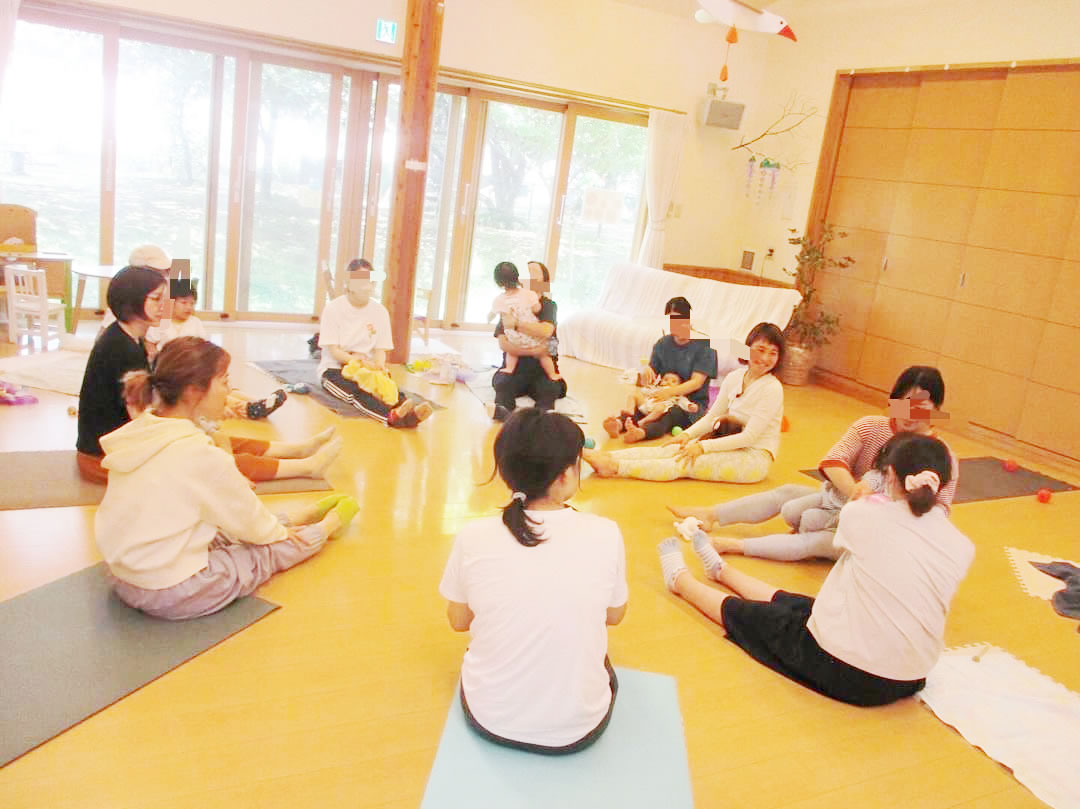 雰囲気もとても穏やかで、保護者の方々も笑顔を見せながらヨガを楽しむ姿や子どもたちの月齢もまちまちではありましたが、親子でふれあいながら楽しめていました!
